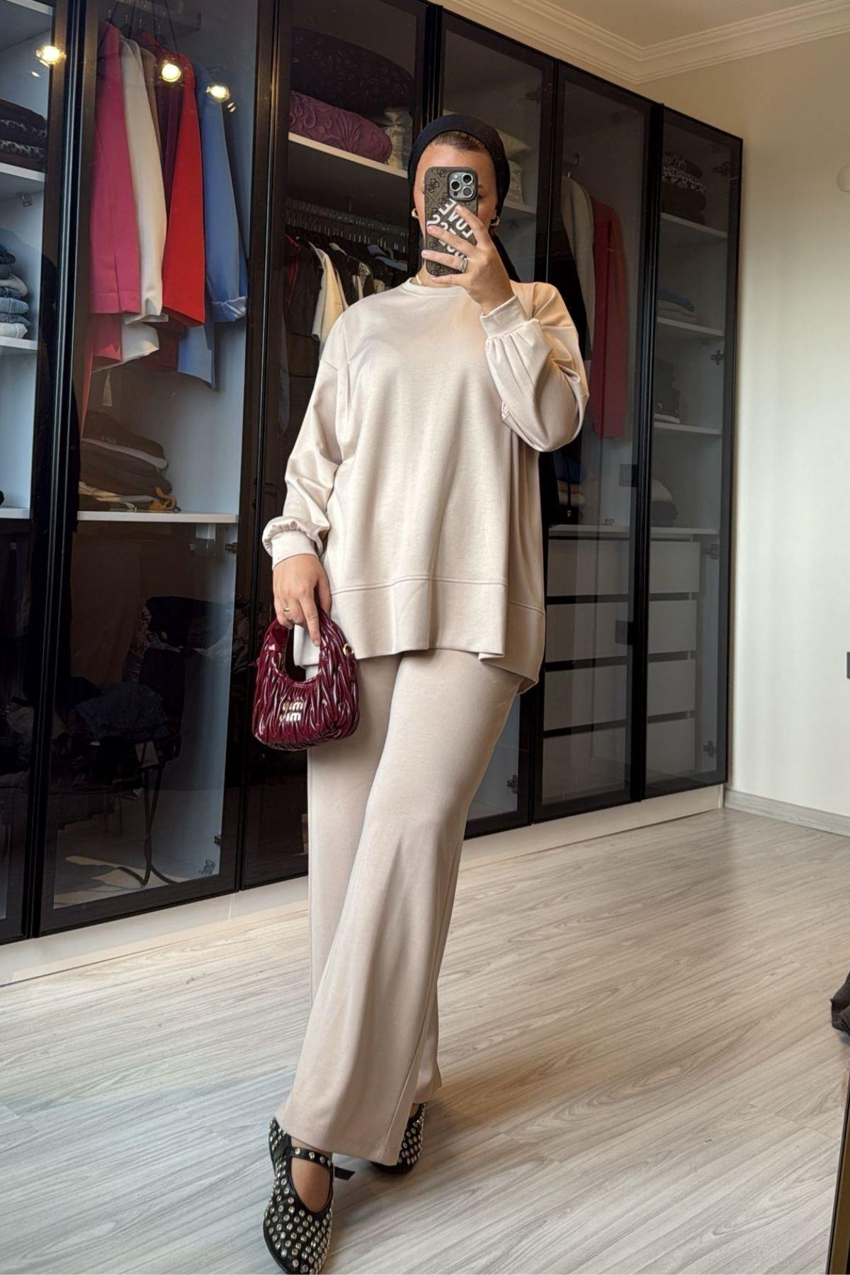 Kadın Bej Oysho Kumaş Basic Takım (6018)