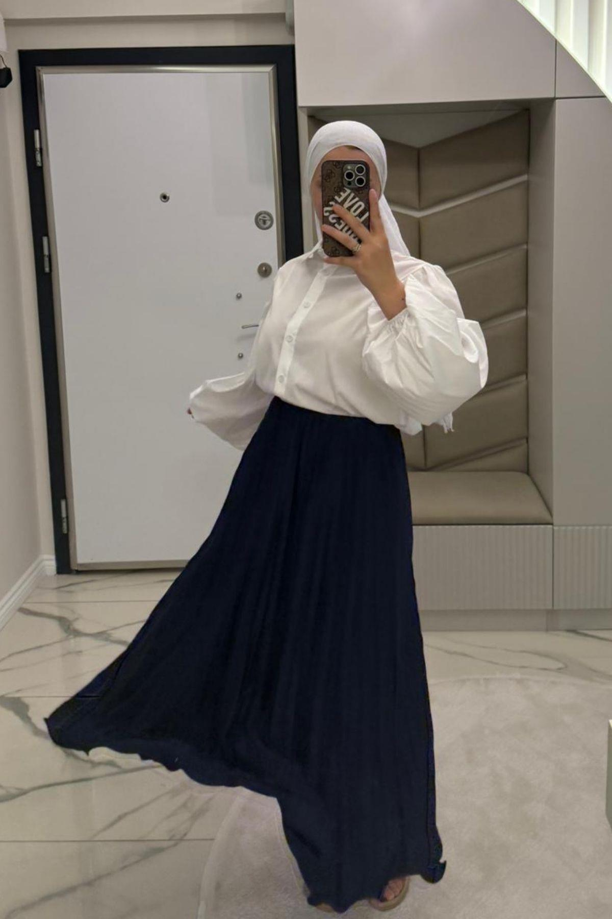 Kadın Lacivert Paçası Fırfırlı Etek (2004)